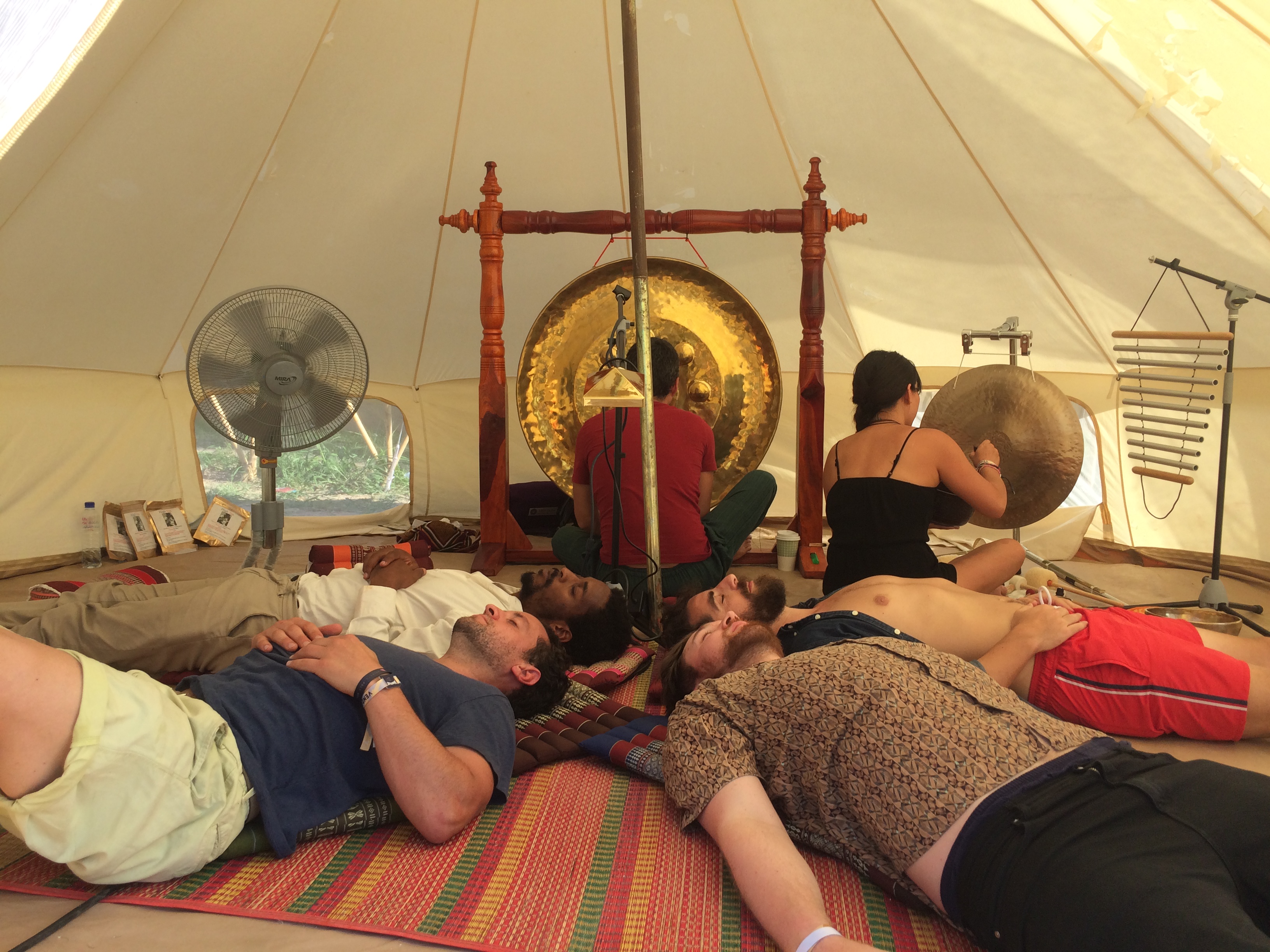 A Sound Bath is a rich multi-layered experience. Unique instruments such as gongs, didgeridoos, flute, the voice (including overtone singing techniques) and shruti box are played. The combined sonic effect of these instruments delivers a deeply relaxing sense of well being to body and mind and healing is achieved in the body by assisting it to let go by restoring it’s own natural rhythm and flow.